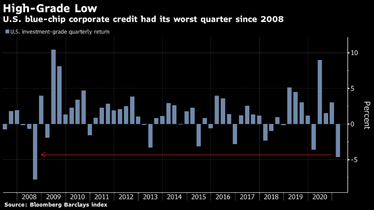 High grade bonds had a historically bad quarter to start 2021. In the last 13 years, the only quarter to post worse returns was Q3 2008, during the start of the great recession.
