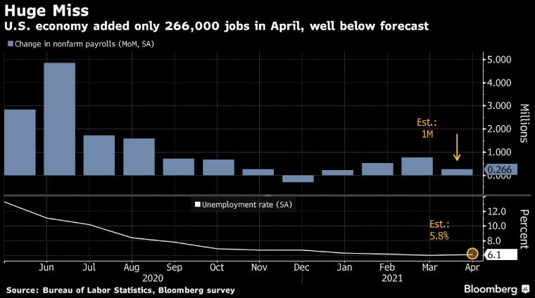 After what appeared to be a trend of solid hiring progress for three consecutive months, April’s data came in well under expectations, resulting in a tick up in the unemployment rate. The disappointment caught economists by surprise, as most states are beginning to relax or outright remove economic restrictions.
