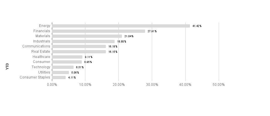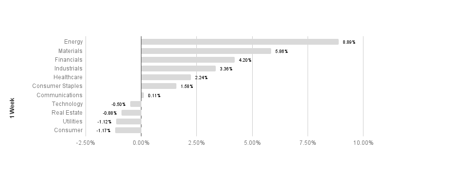 Broad market equity indices finished the week mixed, with major large cap indices outperforming small cap. Economic data has been mostly encouraging, but the global recovery has a long way to go to recover from COVID-19 lockdowns. S&P sectors returned mixed results this week. Energy and materials outperformed, returning 8.89% and 5.86% respectively. Utilities and consumer discretionary underperformed, posting -1.12% and -1.17% respectively. Energy maintains its lead in 2021 with a 41.42% return.