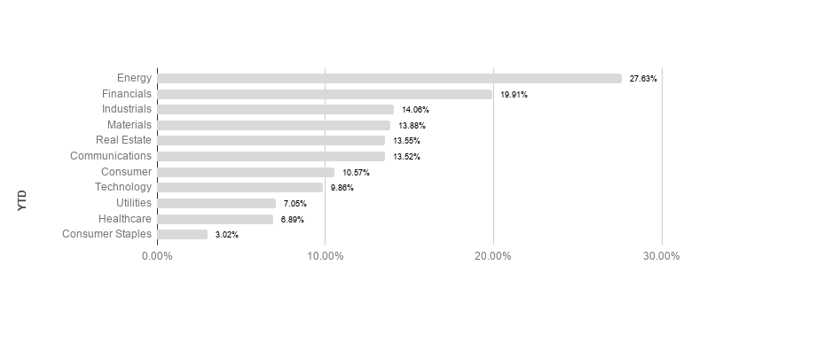 Broad market equity indices finished the week up, with major large cap indices outperforming small cap. Economic data has been encouraging, but the global recovery has a long way to go to recover from COVID-19 lockdowns. S&P sectors returned almost exclusively positive results this week. Utilities and materials outperformed, returning 3.66% and 3.24% respectively. Energy and communications underperformed, posting 0.23% and -0.01% respectively. Energy maintains its lead in 2021 with a 27.63% return.