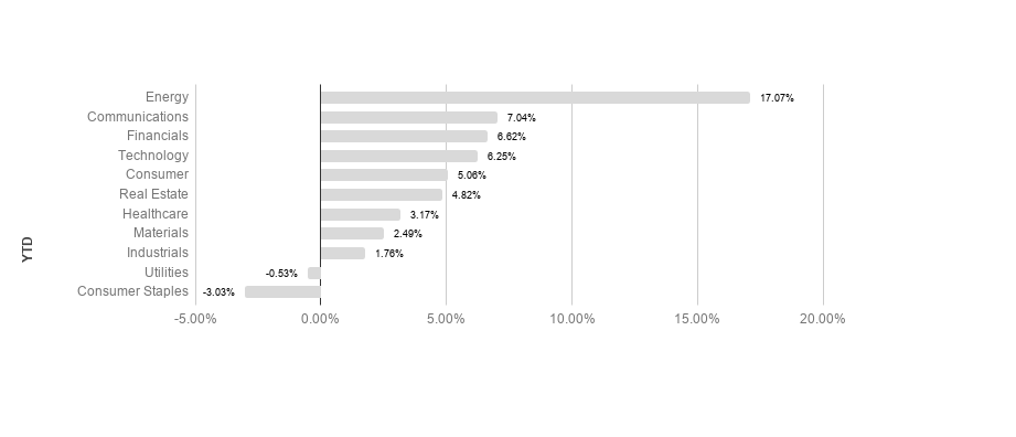 Broad market equity indices finished the week up, with major large cap indices underperforming small cap. Economic data has been steadying, but the global recovery has a long way to go to recover from COVID-19 lockdowns. S&P sectors returned mostly positive results this week. Energy and technology outperformed, returning 4.33% and 2.30% respectively. Consumer discretionary and utilities underperformed, posting -1.26% and -1.79% respectively. Energy maintains its lead 2021 with a 17.07% return.