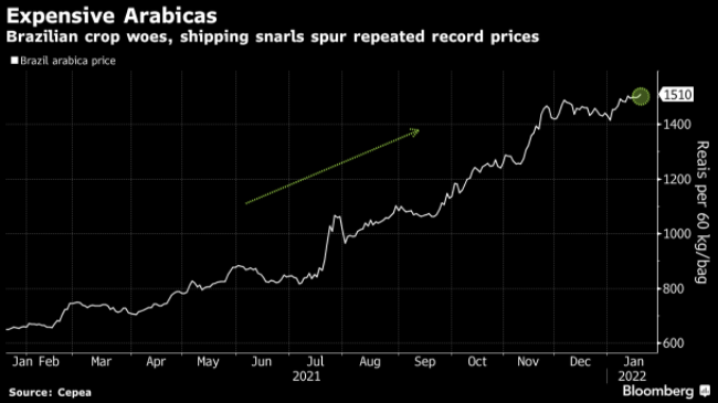 Your daily cup of Joe may get more expensive, as supply side problems continue to hound the world's largest coffee exporter. Arabica coffee bean prices have more than doubled in the last year as supply chain problems plague the coffee industry in Brazil.
