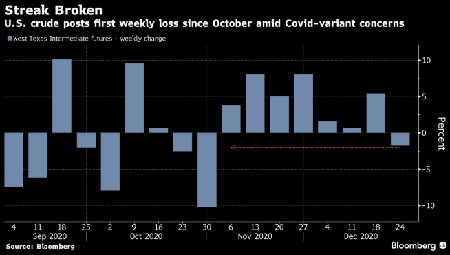 All streaks eventually come to an end. After 7 weeks of gains, crude oil finally posted a losing week. Oil markets continue to watch the pandemic situation closely as a recovery in consumption largely hinges on a return to normal economic activity.