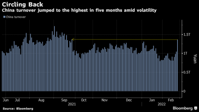 Chinese equities changed hands at an accelerated pace last week as shockwaves from the invasion of Ukraine reverberate throughout the global economy.