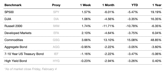 US equity markets rose this week, with all major equity indices finishing positive. For the second consecutive week, markets welcomed a pleasant surprise, with this week’s being nonfarm hiring. Consensus expectations were for hiring to come in around 120K, but actual numbers hit 467K. While this is a welcome development, the labor market still has some ways to go to reach pre-pandemic levels, and inflation continues to pose a threat to further recovery. Time will tell whether the Fed is doing too little too late on inflation, but their willingness to act late is better than continuing to invoke that inflation is “transitory.” Overall, the economy is still recovering well from pandemic lockdowns. The biggest threat to the economy remains inflation, and the Fed now appears to be taking the threat more seriously.