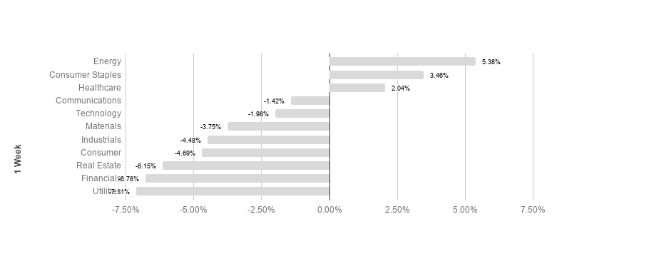 Broad market equity indices finished the week down, with major large cap indices outperforming small cap. Recent fears returned this week, as prices fell in response to rising unemployment claims. Other economic data has come in above expectations, as both consumer confidence and manufacturing PMI (purchasing managers index) surprised analysts, possibly providing encouragement surrounding the market as a whole. S&P sectors returned mixed results this week, as broad market movements showed investors shifting between sectors. Energy and consumer staples led the best performing sectors returning 5.38% and 3.46% respectively. Financials and utilities performed the worst, posting -6.78% and -7.11% respectively. Consumer staples now leads the pack so far YTD, returning -12.04% in 2020.