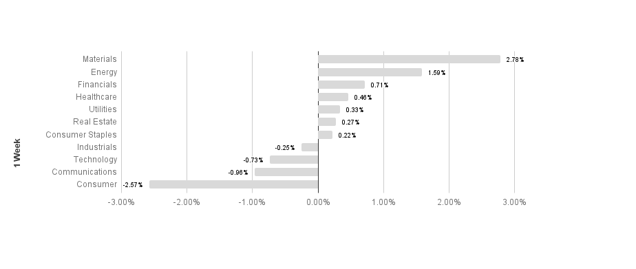 Broad market equity indices finished the week mixed, with major large cap indices underperforming small cap. Economic data has been mostly encouraging, but the global recovery has a long way to go to recover from COVID-19 lockdowns. S&P sectors were mixed this week. Materials and energy outperformed, returning 2.78% and 1.59% respectively. Energy and utilities underperformed, posting -0.96% and -2.57% respectively. Energy maintains its lead in 2021 with a 30.35% return.