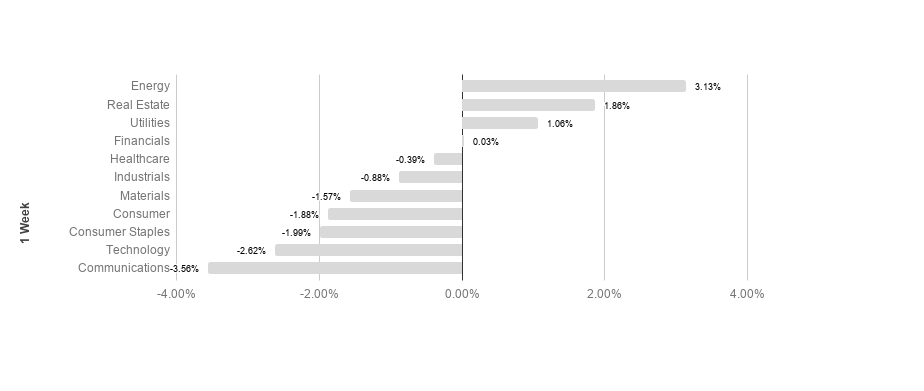 Broad market equity indices finished the week down, with major large cap indices underperforming small cap. Economic data has been inconsistent, and the global recovery has a long way to go to recover from COVID-19 lockdowns. S&P sectors returned mostly negative results this week. Energy and real estate outperformed, returning 3.13% and 1.86% respectively. Technology and communications underperformed, posting -2.62% and -3.56% respectively. Energy is off to a hot start for 2021 with a 12.74% return, possibly reflecting further recovery in the embattled sector.