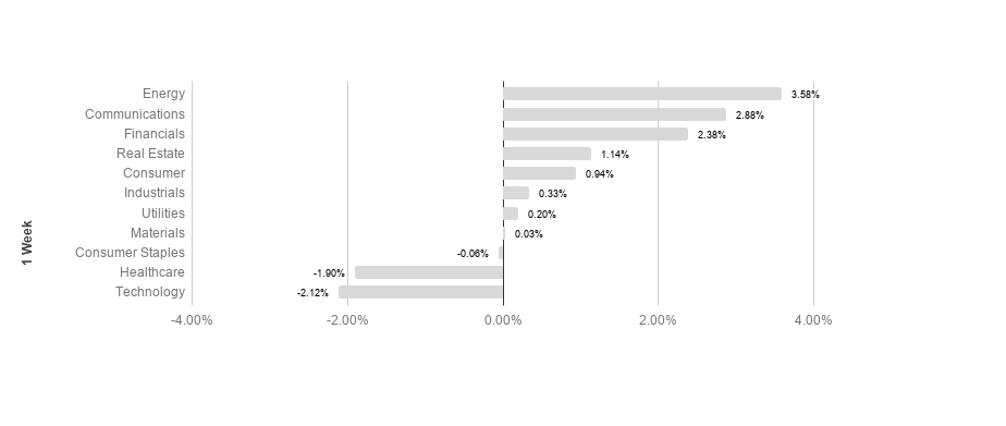 Broad market equity indices finished the week mixed, with major large cap indices outperforming small cap. Economic data has been encouraging, but the global recovery has a long way to go to recover from COVID-19 lockdowns. S&P sectors returned mixed results this week. Energy and communications outperformed, returning 3.58% and 2.88% respectively. Healthcare and technology underperformed, posting -1.90% and -2.12% respectively. Energy maintains its lead in 2021 with a 29.87% return.