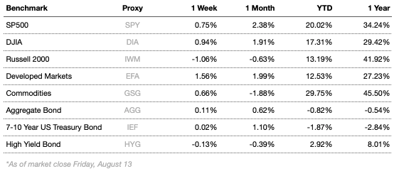 Markets were mixed this week as low consumer sentiment surprised analysts. The University of Michigan consumer sentiment index came in well under expectations, highlighting renewed economic fears surrounding inflation and the spread of COVID-19. CPI numbers continue to come in high, showing substantial upward price pressure. COVID-19 cases have been rising nationally again, with most new cases being attributed to the “Delta” variant, but so far deaths have not been spiking at the same rate as infections, a new development that likely can be attributed to large swaths of the population having been vaccinated. Overall, the economy is well positioned to continue recovering from pandemic lockdowns, but inflation risks as well as labor challenges and production capacity are eating into productivity.