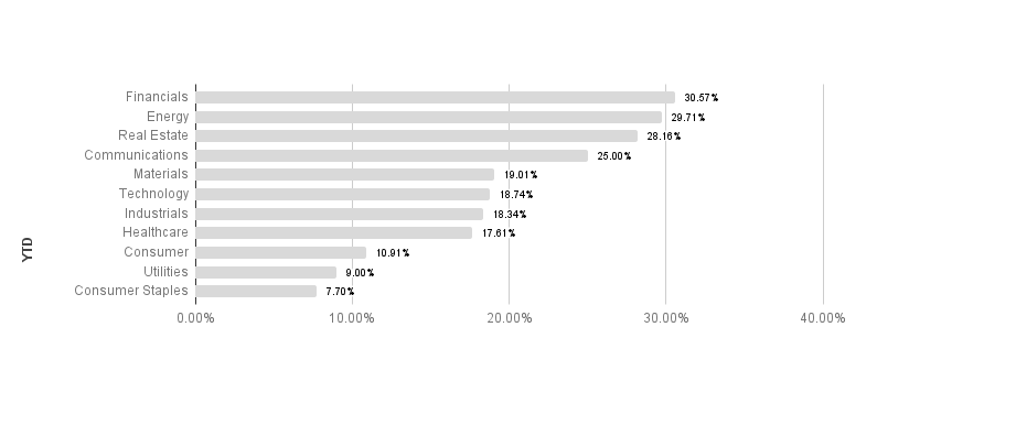 Broad market equity indices finished the week mixed, with major large cap indices outperforming small cap. Economic data has been mostly encouraging, but the global recovery has a long way to go to recover from COVID-19 lockdowns. S&P sectors were mostly positive this week. Materials and consumer staples outperformed, returning 2.68% and 2.07% respectively. Real estate and energy underperformed, posting 0.01% and -0.82% respectively. Financials have taken the lead in 2021 with a 30.57% return.