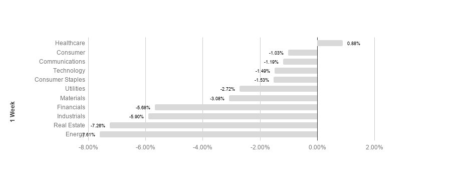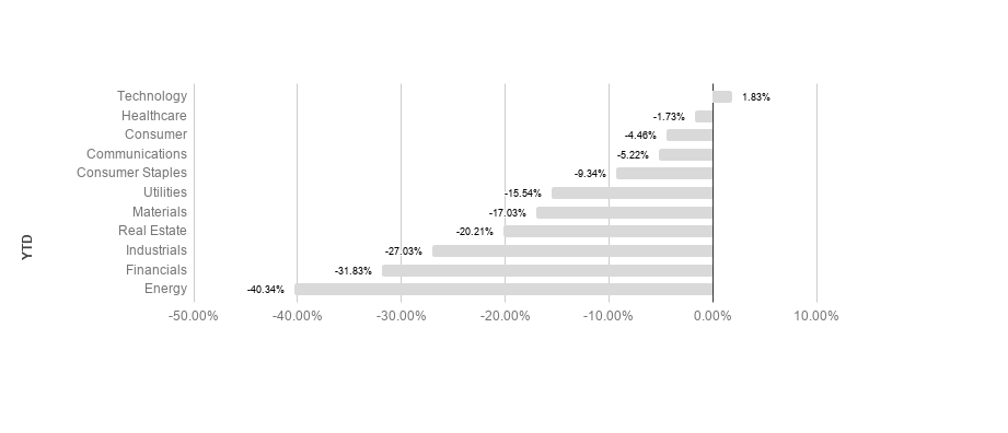 Broad market equity indices finished the week down, with major large cap indices outperforming small cap. Economic data is still predominantly negative, but the first steps needed to see leveling out are being taken, as multiple U.S. states have reopened their economies and more are poised to do the same this month.S&P sectors returned almost unanimously negative results this week, as broad market movements showed investors retreating from almost all sectors. Healthcare led the best performing sectors, followed by consumer discretionary, returning 0.88% and -1.03% respectively. Real estate and energy performed the worst, posting -7.26% and -7.61% respectively. Technology leads the pack so far YTD, returning 1.83% in 2020.