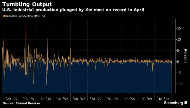 Industrial output had a disastrous month in April, registering the worst monthly decline in the history of the measurement. The manufacturing sector has been devastated by Covid-19 shutdowns leading to abysmal output.