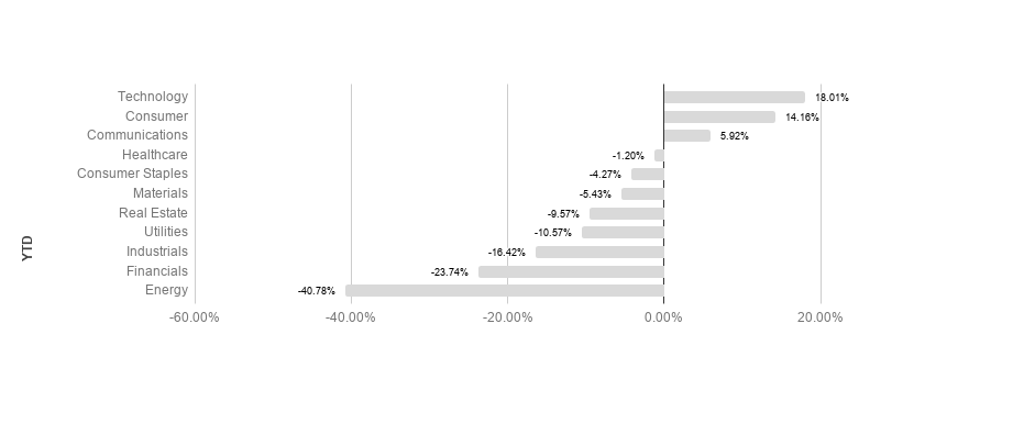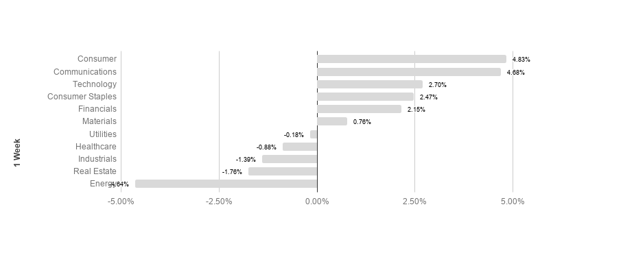 Broad market equity indices finished the week mostly up, with major large cap indices outperforming small cap. Economic data has continued to impress, but the global recovery still has a long way to go to regain lost jobs and output. S&P sectors returned mostly positive results this week, as broad market movements showed investors buying most sectors. Materials led the best performing sectors, followed by utilities, returning 4.02% and 3.78% respectively. Energy and financials performed the worst for the second consecutive week, posting -1.37% and -2.83% respectively. Technology leads the pack so far YTD, returning 14.91% in 2020.
