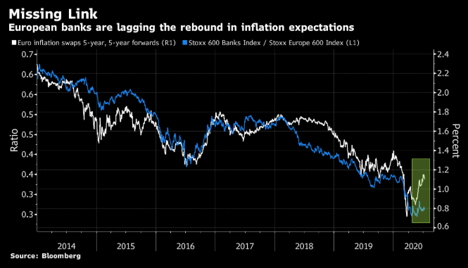 Expectations of inflation in the Eurozone are now vastly outpacing European bank valuations. Banks globally have not fared well in the pandemic era, with European banks being no exception. Low prime rates tend to squeeze bank margins, making profitability more diBrookstonecult to achieve.