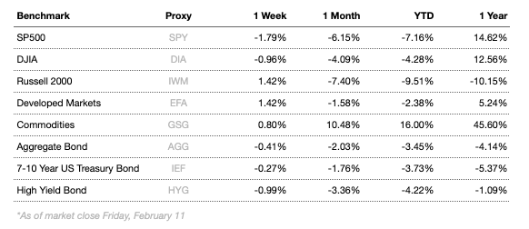 US equity markets were mixed this week, with large cap equity indices finishing negative while small cap finished positive. Consumer sentiment plunged to the lowest levels in more than a decade, with degradation of personal finances as a result of inflation being the largest driver of the negativity. The continuing struggle against the damaging impact of inflation has yet to bear any fruit in the eyes of consumers as expectations are for inflation to continue to rise per the new sentiment report. Time will tell whether the Fed is doing too little too late on inflation, but their willingness to act late is better than continuing to invoke that inflation is “transitory.” Overall, the economy is still recovering well from pandemic lockdowns. The biggest threat to the economy remains inflation, and the Fed now appears to be taking the threat more seriously.