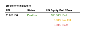 In a nutshell, we want the RPI to be low on a scale of 1 to 100. For the US Equity Bull/Bear indicator, we want it to read at least 66.67% bullish. When those two things occur, our research shows market performance is typically stronger, with less volatility.