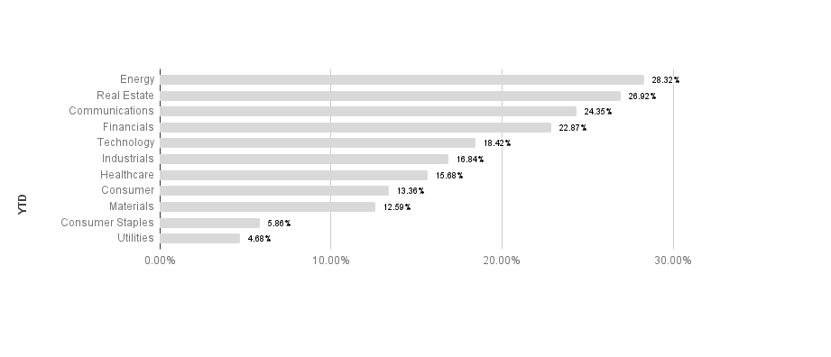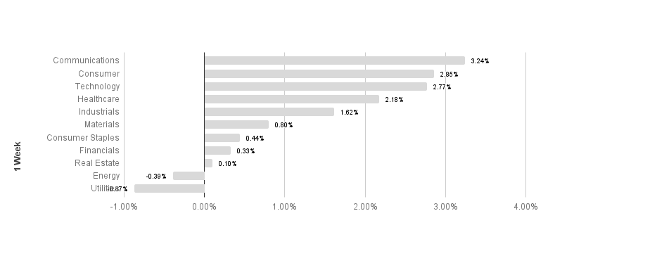 Broad market equity indices finished the week positive, with major large cap indices underperforming small cap. Economic data has been mostly encouraging, but the global recovery has a long way to go to recover from COVID-19 lockdowns. S&P sectors were mixed this week. Communications and consumer discretionary outperformed, returning 3.24% and 2.85% respectively. Energy and utilities underperformed, posting -0.39% and -0.87% respectively. Energy maintains its lead in 2021 with a 28.32% return.