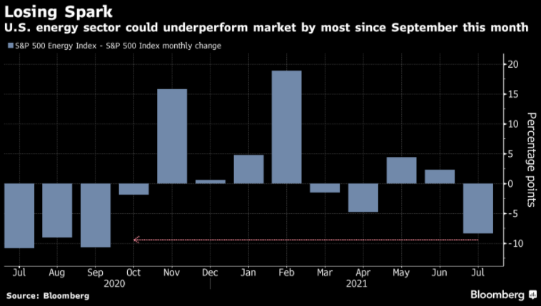The energy sector has been in a selloff during the month of July, reversing two prior months of gains. While oil demand is clearly on the rise, markets appear to be doubtful that oil companies are well positioned to capitalize on the conditions.