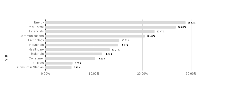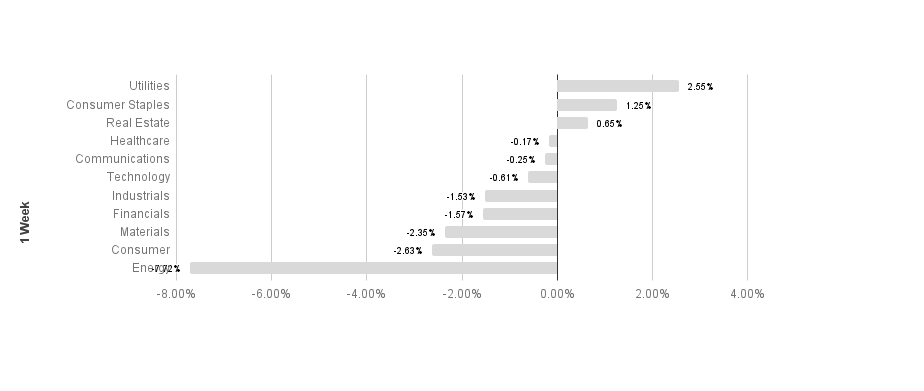 Broad market equity indices finished the week negative, with major large cap indices outperforming small cap. Economic data has been mostly encouraging, but the global recovery has a long way to go to recover from COVID-19 lockdowns. S&P sectors were mixed this week. Utilities and consumer staples outperformed, returning 2.55% and 1.25% respectively. Consumer discretionary and energy underperformed, posting -2.63% and -7.72% respectively. Energy maintains its lead in 2021 with a 28.82% return.