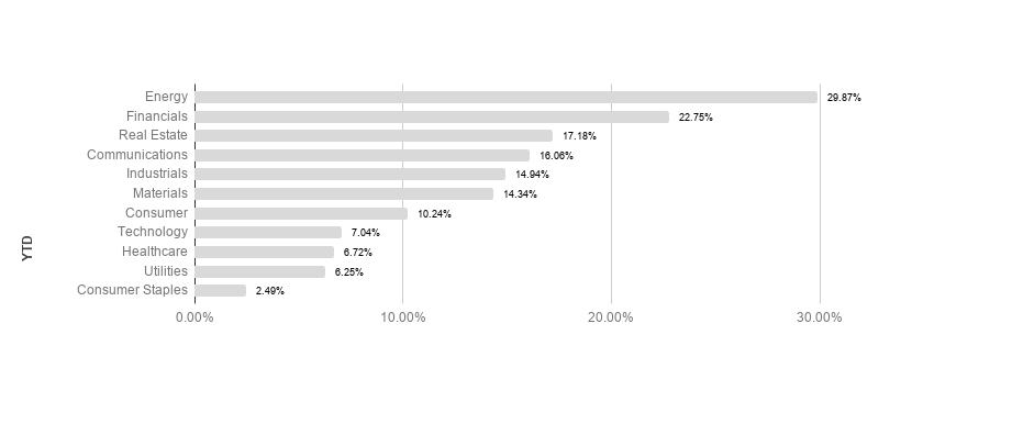 Broad market equity indices finished the week mixed, with major large cap indices outperforming small cap. Economic data has been encouraging, but the global recovery has a long way to go to recover from COVID-19 lockdowns. S&P sectors returned mixed results this week. Energy and communications outperformed, returning 3.58% and 2.88% respectively. Healthcare and technology underperformed, posting -1.90% and -2.12% respectively. Energy maintains its lead in 2021 with a 29.87% return.