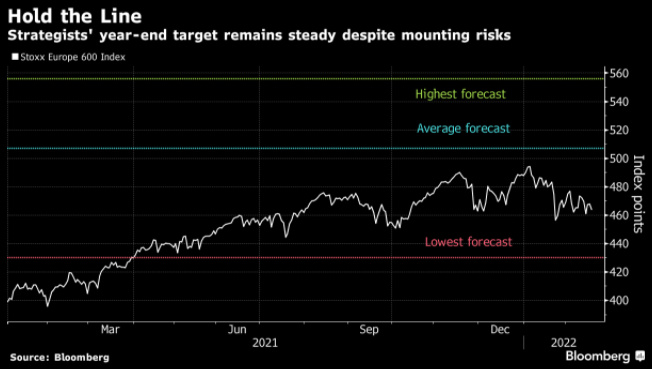 In spite of the high risk of war in Eastern Europe, expectations for European equities remain favorable, with average forecasts indicating roughly 10% upside for stocks.