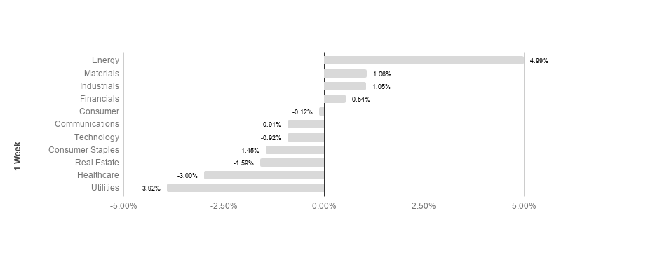 Broad market equity indices finished the week mixed, with major large cap indices underperforming small cap. Economic data has been solid, but the global recovery is still threatened by COVID-19. S&P sectors returned mixed results this week. Energy and materials outperformed, returning 4.99% and 1.06% respectively. Healthcare and utilities underperformed, posting -3.00% and -3.92% respectively. Technology leads the pack so far YTD, returning 30.94% in 2020.